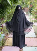হিজাব – নরম অরিজিনাল চায়না জর্জেট কাপড়ের তৈরি। হিজাব (সামনে ৪৫”, পিছনে ৫০”) ও  ফুল কাভারেজ দেয় এবং সুন্দরভাবে ফিট হয়।
